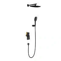 Душевой комплект Timo Helmi SX-4069/03SM с матовой черной поверхностью включает верхний душ диаметром 30 см и ручную лейку с 1 режимом струи. Вылет верхнего душа — 31,5 см, угол наклона регулируется. Металлический шланг длиной 150 см, керамический картридж. Стандарт подводки — 1/2". Функция экономии расхода воды. В комплекте душевой шланг, лейка, переключатель потоков и кронштейн для верхнего душа. Количество потребителей — 2.