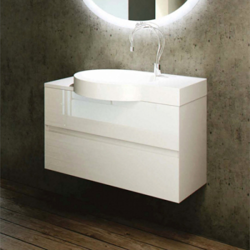 Мебель для ванной La Beaute ALLIER 100 предусматривает подвесной монтаж, что делает интерьер более аккуратным, легким, привлекательным. Гарнитур состоит из овальной накладной раковины, тумбы с двумя отсеками, шкафа-пенала, овального зеркала. Мебель изготавливается в цвете белый, черный, макассар.