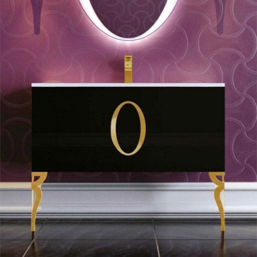 Мебель для ванной La Beaute Gard 90 предложена французскими дизайнерами для эффектного оформления помещения. Гарнитур состоит из тумбы с двумя ножками, белой раковины, пенала, большого овального зеркала и двух изящных бра. Мебель выпускается в белом и черном цвете. Фурнитура предлагается в цвете золото.