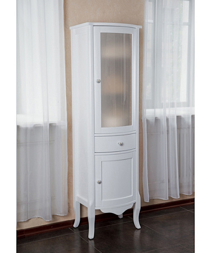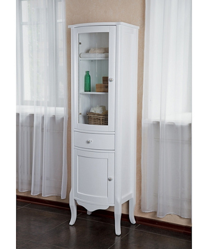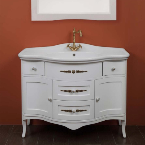 Мебель для ванной La Beaute Sabrina 102 представлена французской компанией. Гарнитур реализуется по высокой цене, которая полностью соответствует качеству изделия. Напольная тумба и шкаф оснащаются уникальным декором, красивыми ручками, фурнитурой трех оттенков. Большое зеркало заключено в раму.