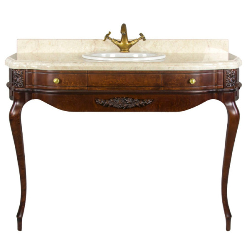 Мебель изготовлена из натурального дерева и МДФ фанерованного шпоном. При финишной отделке, мебель покрывается высокопрочной водонепроницаемой эмалью и лаком. Столешница - натуральный мрамор. Раковина - керамическая. Тумба с 2 ящиками. Мебель оснащена системой доводчиков.