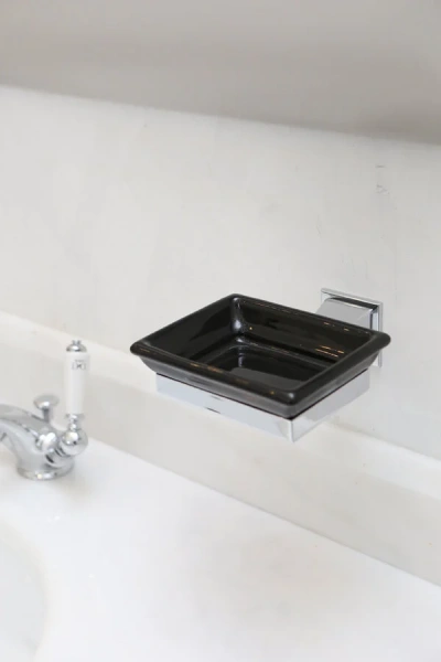 Керамическая мыльница является незаменимым аксессуаром в каждой ванной комнате. Модель выполнена в прямоугольной форме из прочного материала в черном и белом цвете. Изделие крепится к стене, поэтому комплектуется соответствующим держателем. Металлические элементы можно выбрать в цвете хром или латунь.