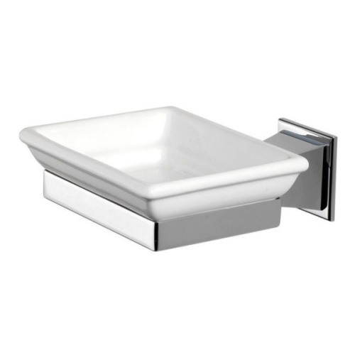 Мыльница от итальянских дизайнеров выполняется в прямоугольной форме и выпускается в белом и черном цвете. Изделие крепится к стене при помощи металлической конструкции. Держатель выпускается в трех вариантах цвета, поэтому аксессуар легко гармонирует с сантехникой, мебелью и остальными предметами.