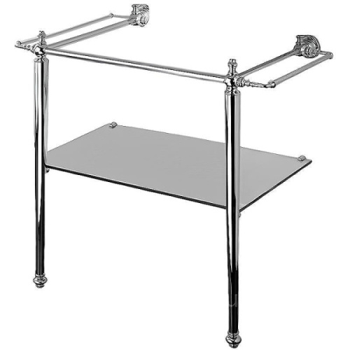 Раковина устанавливается при помощи металлической консоли, оснащенной полотенцедержателями и стеклянной полочкой. В комплект входит сифон. Все металлические части выпускаются в трех вариантах цвета. Раковина может быть на одно или на три отверстия, в черном или белом цвете. Форма раковины прямоугольная.
