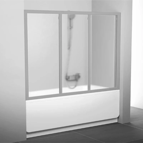 Раздвижные ванные двери, состоящие их трех элементов, один из которых неподвижный.