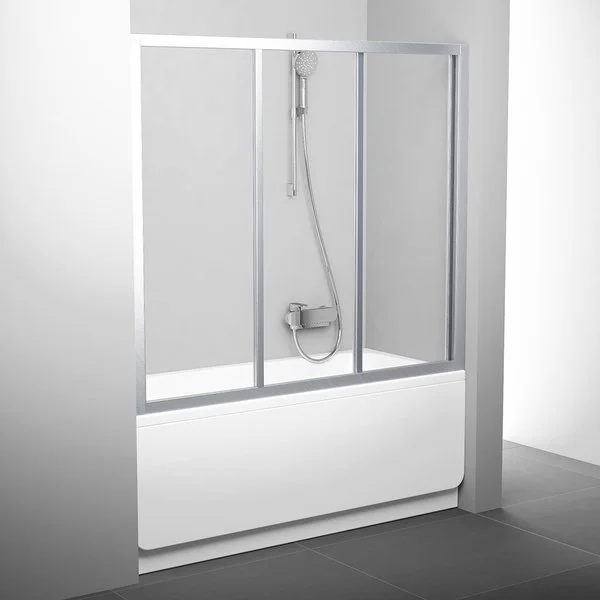 Ванные двери состоят из одной неподвижной и двух подвижных частей. Конструкция изготовлена из толстостенных алюминиевых профилей с качественной поверхностной обработкой и максимальной герметичностью. Двери подходят для прямоугольных ванн (Praktik Lux, Praktik N, Classic, Sonata, Campanula II, Vanda II и Lilia) или каких-либо классических ванн с ровным передним бортом. Ванные двери AVDP3 подходят для установки в нише (закрытое с трех сторон душевое пространство) или комбинации с неподвижной стенкой APSV. Стандартная высота ванной двери 1370 мм.