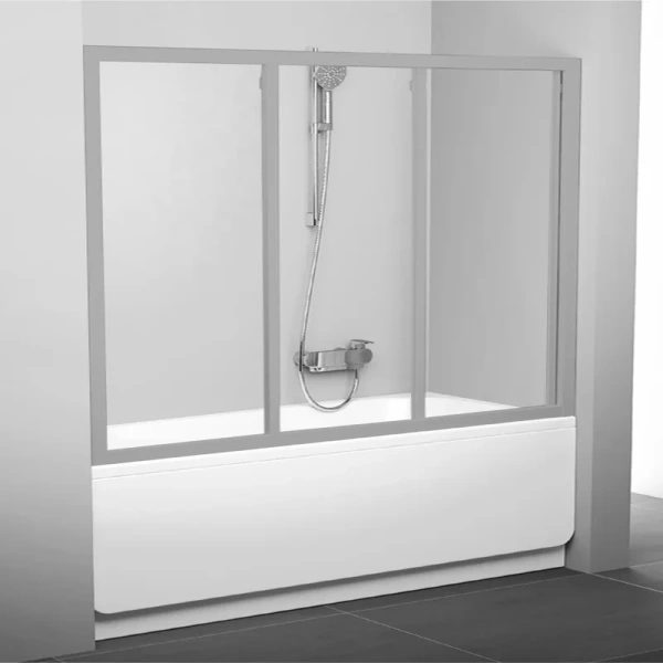 Ванные двери состоят из одной неподвижной и двух подвижных частей. Конструкция изготовлена из толстостенных алюминиевых профилей с качественной поверхностной обработкой и максимальной герметичностью. Двери подходят для прямоугольных ванн (Praktik Lux, Praktik N, Classic, Sonata, Campanula II, Vanda II и Lilia) или каких-либо классических ванн с ровным передним бортом. Ванные двери AVDP3 подходят для установки в нише (закрытое с трех сторон душевое пространство) или комбинации с неподвижной стенкой APSV. Стандартная высота ванной двери 1370 мм.