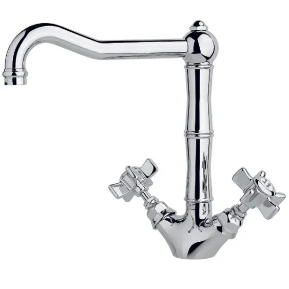 Смеситель для кухни Nicolazzi D.Anglaises 1469 выполнен в классическом дизайне и предлагается в широком цветовом диапазоне, поэтому находит применение в оборудовании самых разных интерьеров. Модель устанавливается на бортик раковины или на столешницу под одно отверстие. Вода регулируется ручками-крестиками, но их можно заменить другими по форме.