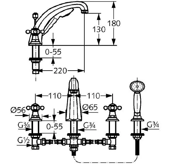 - Оснащение: аэратор, душевая лейка, душевой шланг, смеситель
