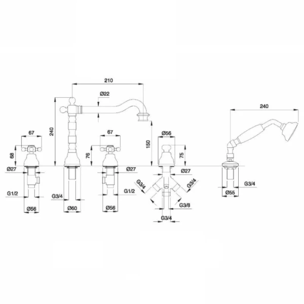 Смеситель для ванны Migliore Revival бронза 19485