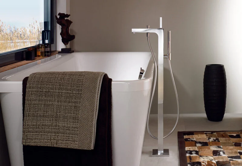 Смеситель для ванны напольный Hansgrohe Axor Citterio 39451000 используется с ванными, которые устанавливаются свободно. Высота конструкции составляет 101 см, длина излива – 23,5 см. Изделие комплектуется одной ручкой управления, компактной системой ручного душа. Держатель лейки расположен на корпусе смесителя. Дизайн современный.