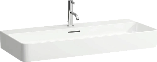 Тумба с раковиной Laufen Val 4.1020.2.160 933х410мм имеет строгую геометрическую форму. Она предлагается в разных оттенках: матовый белый, орех, вяз. Также можно выбрать любой цвет из большой палитры. Это подвесной шкафчик с 2-я выдвижными ящиками одинакового размера. Они закрываются легко и бесшумно благодаря доводчикам. Вместо столешницы у этой тумбочки белая накладная раковина с отверстием под смеситель и переливом. Она сделана из качественной керамики, дополнительная опция – защитное покрытие LCC, которое не впитывает загрязнения и легко чистится.